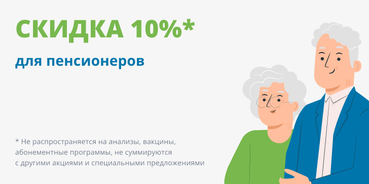 Важно: скидка не распространяется на анализы, вакцины, абонементные программы, а также не суммируется с другими действующими акциями и специальными предложениями.