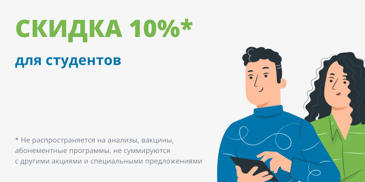 Скидка студентам предоставляется на амбулаторные медицинские услуги в клиниках, расположенных по адресам: Некрасова д.35 и Выборная д. 89/2
